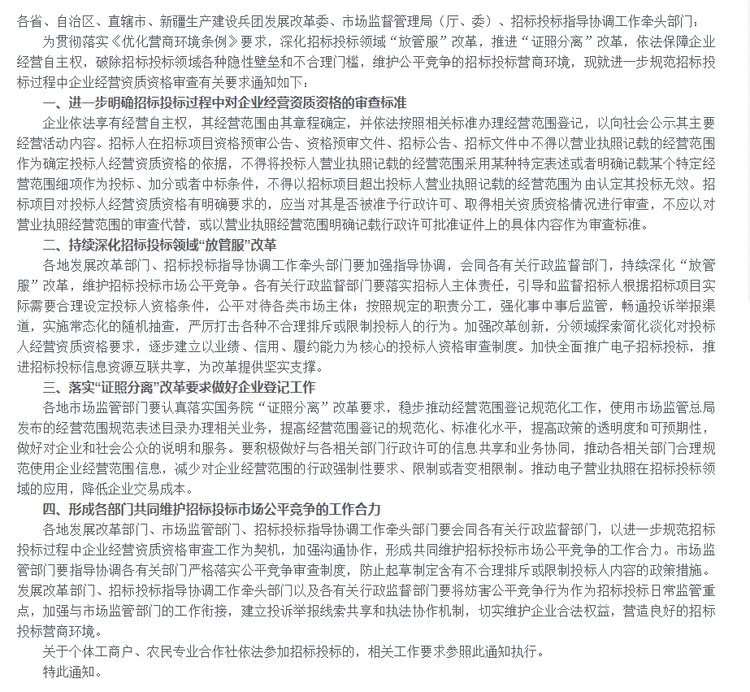 上面是從營(yíng)業(yè)執(zhí)照的層面來講述招投標(biāo)的,在第5條要點(diǎn)中,還明確了:嚴(yán)厲打擊各種不合理排斥或限制投標(biāo)人的行為...